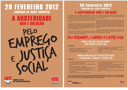 É por estas razões que os sindicatos europeus se mobilizarão no dia 29 de Fevereiro por toda a Europa para afirmar que existem outras soluções para além da disciplina orçamental única. Precisamos de um plano de relançamento para o emprego e o crescimento sustentável.